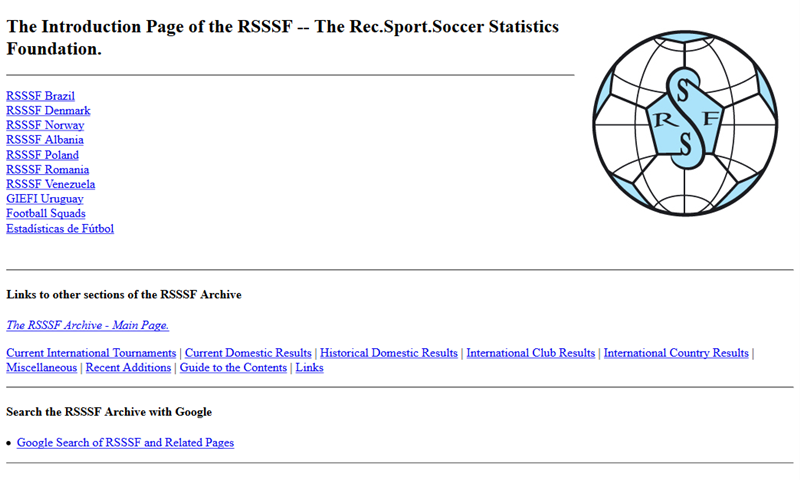 英文のテキストベースで一切の装飾がない同サイトは日本での知名度こそないものの、プレミア・リーガ・セリエAなどのメジャー所からアフリカやカリブのマイナーな国内リーグ、それに19世紀からブラジルW杯予選までの国際試合と、世界中のサッカーについて膨大な情報量とアーカイブを持っている。