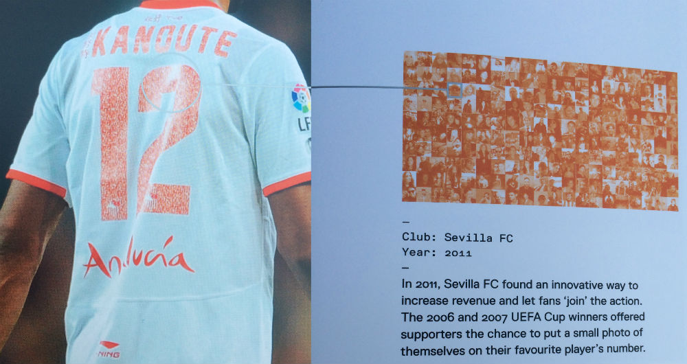 ファン心理を尽くと同時に同時に究極のコピー対策??といえば、セビージャの例があがる。同チームは背番号内の番号2mm*2mmを写真枠として売り出した。実に3000人以上のサポーターがこの枠を買ったという。確かに好きな選手の背中に自分がうつっていたらちょっとお金を払ってしまうかもしれない。