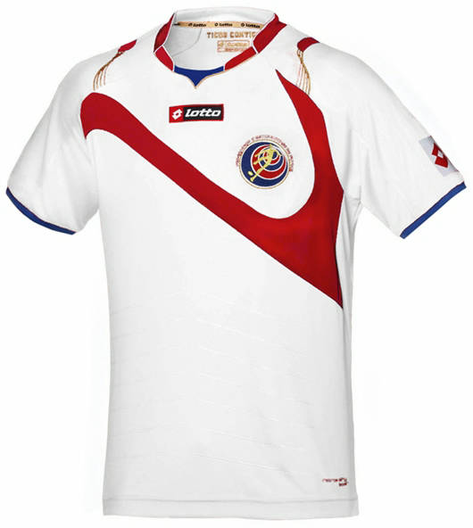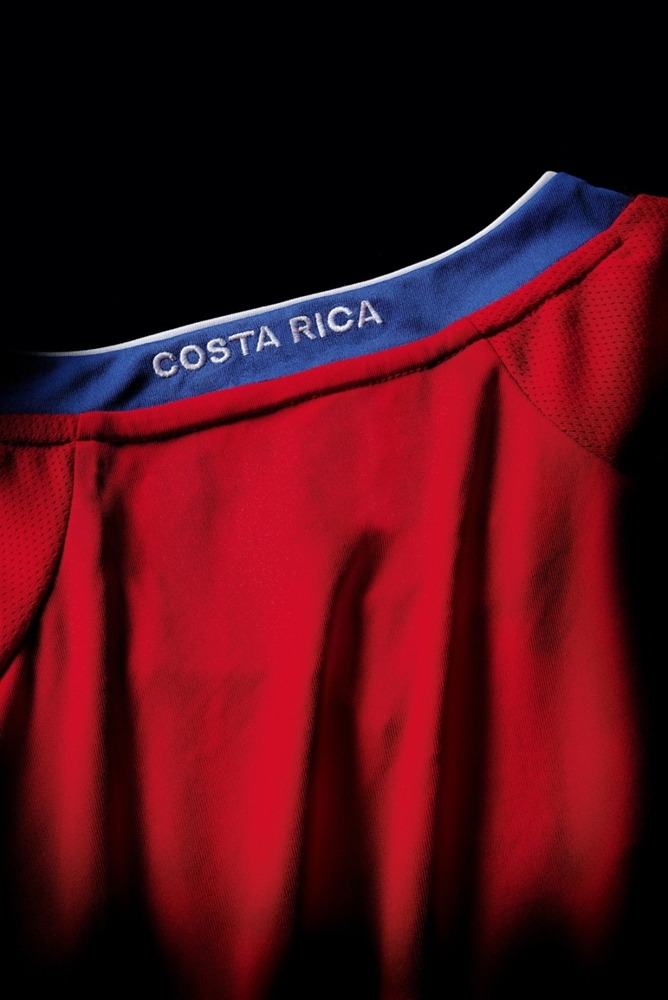 コスタリカのブラジルW杯に向けた新ユニフォームは、右半身に国旗カラーのグラデーションが配された前モデルに続くアシンメトリーデザインを採用。ベースカラーは伝統の赤で、国旗に因んだ青と白が差し色として取り入れられている。サプライヤーは2007年から契約しているイタリアのLotto。