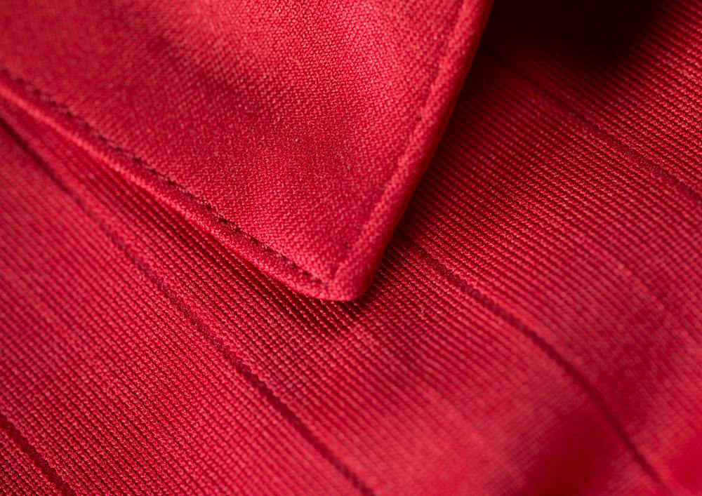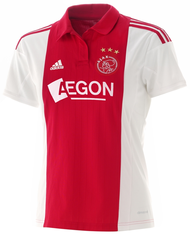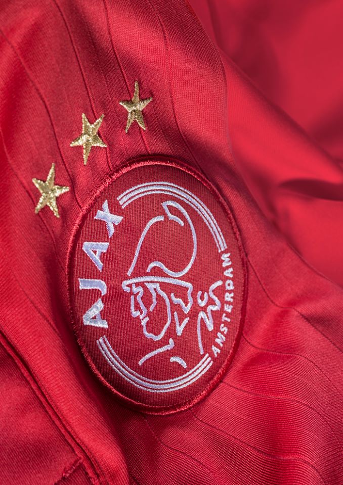 ホームはアヤックスの代名詞である白に太の赤ラインをベースに、ニューモデルではポロネックを採用。身頃にはシャドーのピンストライプが施されている。