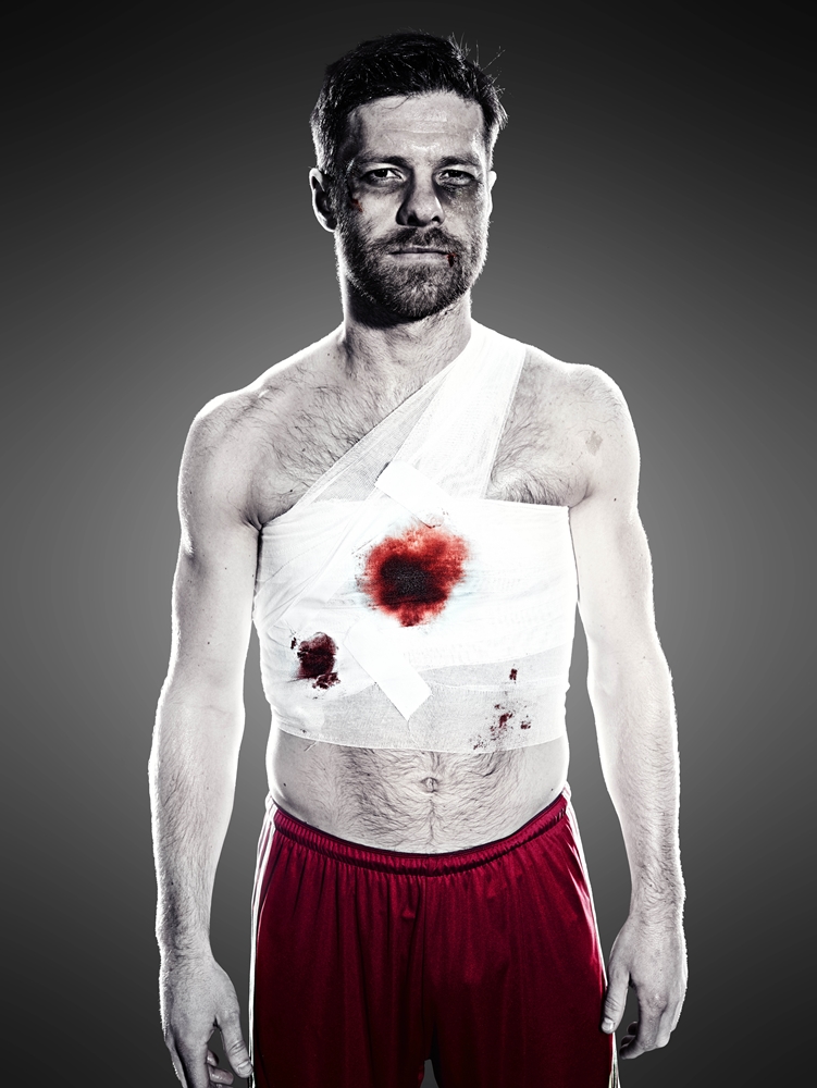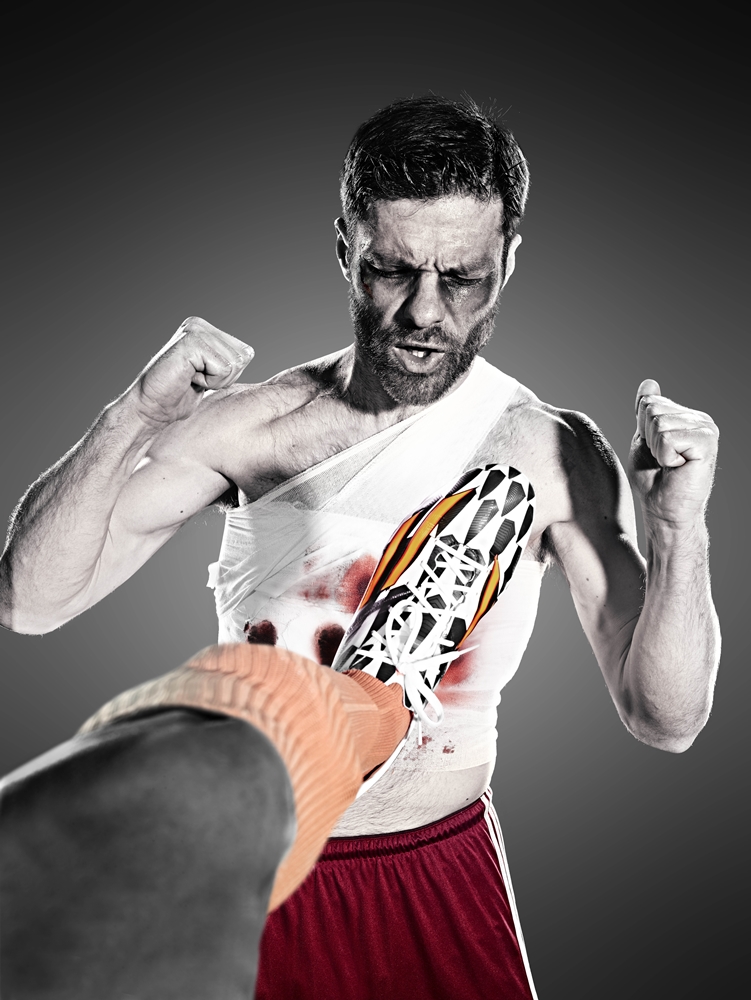 この場面をadidasは今回ピックアップし、試合を前にデ・ヨングの蹴りを受けたスペイン代表MFシャビ・アロンソ(※両者ともに今大会も出場)のこのような広告写真を公開していた。