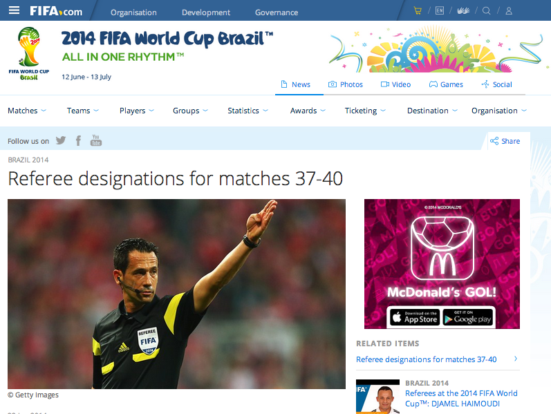 今大会ではグループAの第2節カメルーン対クロアチアの試合を任された。