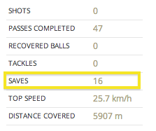 巷には「1試合15セーブ」との情報もあるが、それらはおそらく試合中の記録を参照したと思われる。FIFAの公式サイトでもハワードが記録したのは16セーブとなっている。