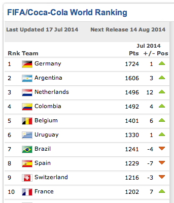 WORLD RANKING: #WorldCup winners Germany top the rankings, Costa Rica in highest-ever spot - http://t.co/ECAJkPfkD3 pic.twitter.com/5nMFXlmoQw