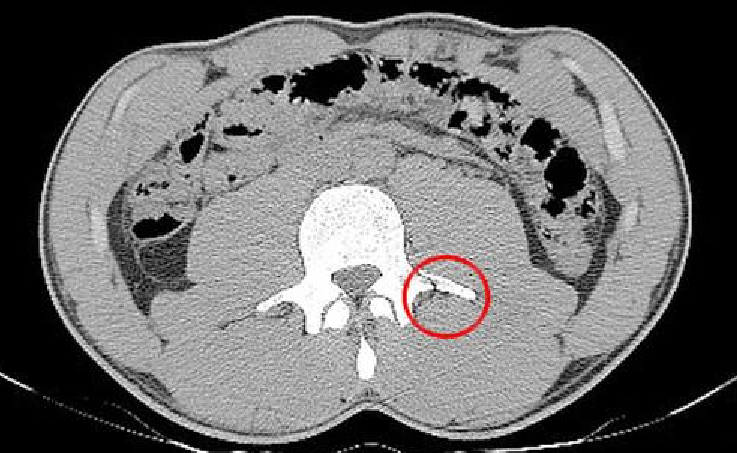 赤い丸で囲まれた部位が骨折したと思われる箇所だが、少し確認しづらいのでアップにしてみよう。