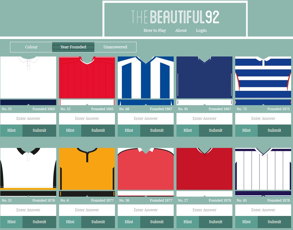 イングランド1部~4部までの計92チームのユニフォームからそのクラブ名を当てられるかというグラフィックを『thebeautiful92.com』が用意していたので紹介。