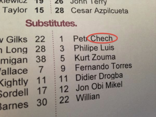 2014, 8月 18正確な"Cech"ではなく、微妙に違った"Chech"というスペル。