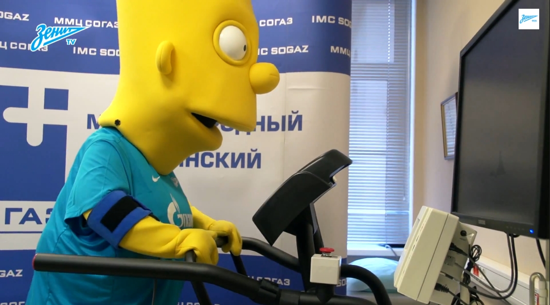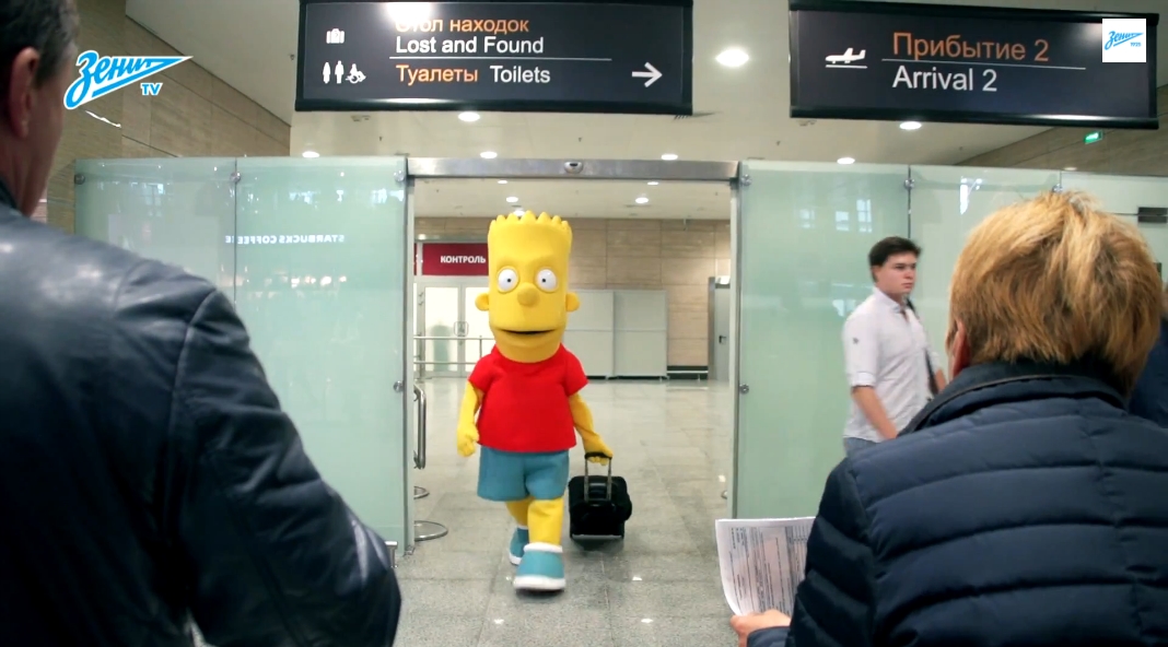 新入団選手らしく迎えられ、ゼニトの一員となったバート・シンプソン。今後は既存の青いライオンのマスコットとともに、近々ゼニトのホーム、ペトロフスキー・スタジアムに登場することになるようだ。