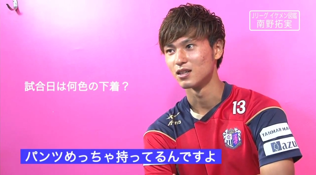 チャームポイントや尊敬する選手、サッカー選手としての夢だけでなく、オフの過ごし方や好きな女性のタイプ、さらには試合日のパンツの色まで聞かれるこの企画。