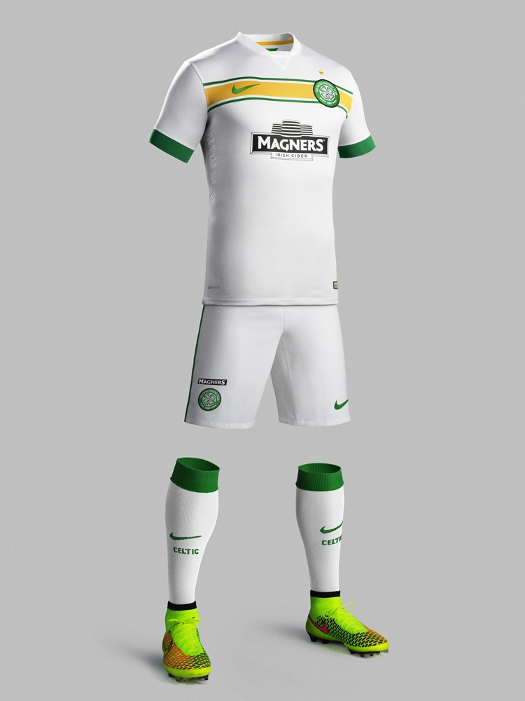 サードは、クラブが創設された1888年当時に使用していた白のユニフォームに触発されたデザインで、繋がりの深いアイルランドに由来する三色をバランスよく配置。胸には引き続きアイルランドの酒造メーカー、C&C Groupの別ブランドである「Magners」のロゴが入る。