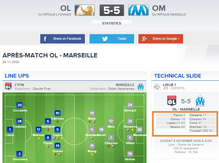 ということで、ここでは5年前の2009年11月にスタッド・ジェルランで行われた壮絶な“ド突きあい”を振り返ってみる。両チーム5点ずつを奪い合った一戦は両クラブの対戦の歴史において今後も語り継がれていくはず。