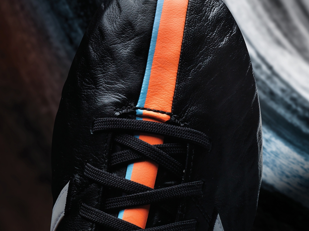今作は前足部のアッパーに“ノンステッチ”カンガルーレザーを採用。これまで通り天然のカンガルーレザーで足を優しく包みつつ、ステッチを極力なくしたことでより素足に近いボールタッチを実現したとのこと。前足部のステッチはプロでも拘りを持つ選手がいるだけに感触が気になるところだ。