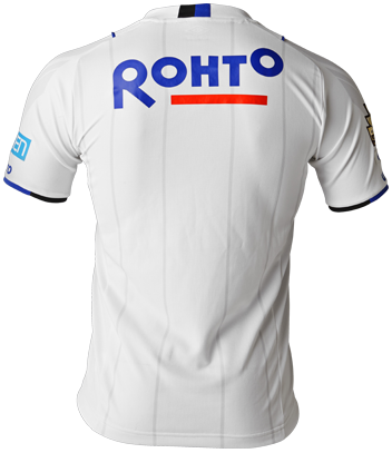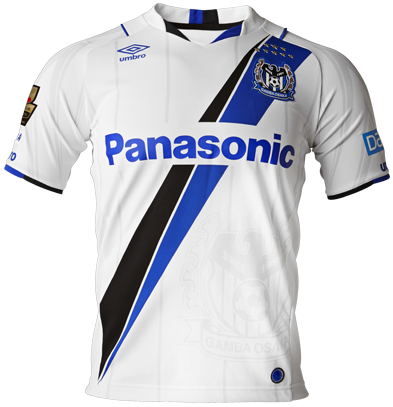アウェイは伝統的に使われている白を基調に、サポーター、選手、スタッフといったガンバ大阪に携わるすべての人の想いを繋ぐ「たすき」を青と黒のラインで大胆にデザイン。