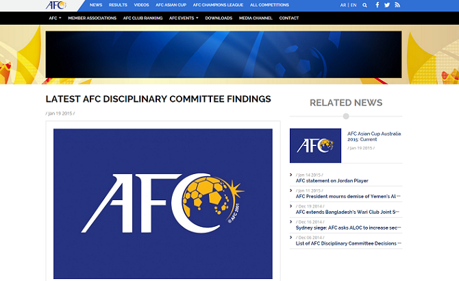 アジアカップ第2節イラク戦後に審判を批判したとして5000ドル(およそ58万8000円)の罰金が科せられニュースになったが、他にも罰金処分を命じられた選手、協会があったようだ。