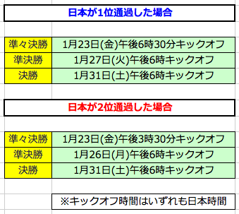 というのも仮に日本が2位通過した場合、イランとの準々決勝は23日(金)の午後3時30分がキックオフなのである。
