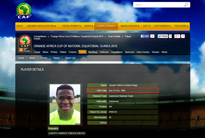 こちらがその選手。1995年12月24日生まれの19歳、ジョセフ・オンドアだ。