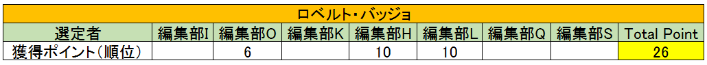 【10位】ロベルト・バッジョ(獲得ポイント:26pts)