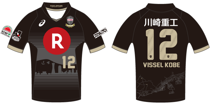 記念ユニフォームは、黒を基調とし、ネームとナンバーをゴールドにして神戸の夜景をイメージしたデザイン。