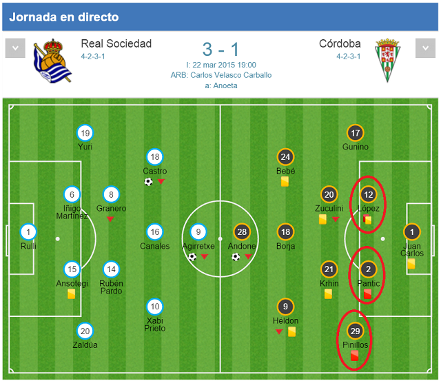 — La Liga (@LaLiga) 2015, 3月 22それは、サンセバスチャンにあるエスタディオ・アノエタで行われた第28節レアル・ソシエダ対コルドバ戦での出来事だ。