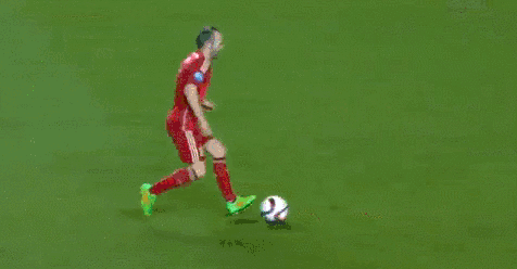 まずは74分までプレーしたイニエスタ。相手の重心を崩す“らしい"フェイントでのドリブル突破はさすが!。