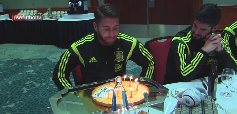 当時スペイン代表は合宿中であり、食事の後にはこんなサプライズが用意されていたらしい。