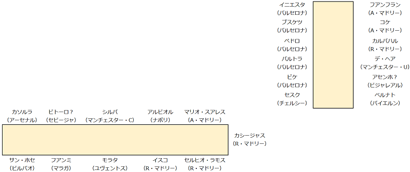イニエスタからセスクにかけては全員カンテラ出身者であり、代表チームでもやはり固まって行動しているらしい。
