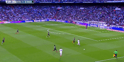 体勢を崩されかけるも、そこから一瞬で立て直すとヒールを使った驚きの股抜き!しっかりクロスにまでつなげており、ベルナベウを大いに沸かせるプレーであった。