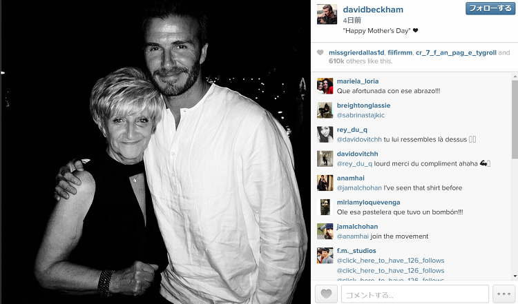 キャプションに"Happy Mother's Day"と記したベッカム。そう、5月10日は母の日であり、自身の母親であるサンドラさんと記念撮影をしていたのだ。