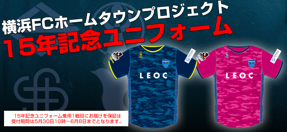 ホームタウンプロジェクト活動が今年で15年目を迎えた横浜FCは28日、「ホームタウンプロジェクト15年記念ユニフォーム」を発表。今年から契約したサッカージャンキーによる迷彩(カモフラ)柄の新ユニフォームが登場した。