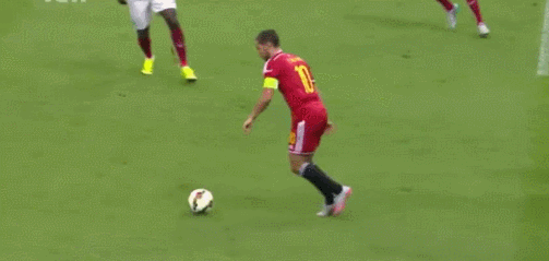 この試合、ベルギーのキャプテンとしてフル出場したエデン・アザールはこんなプレーを見せていた。
