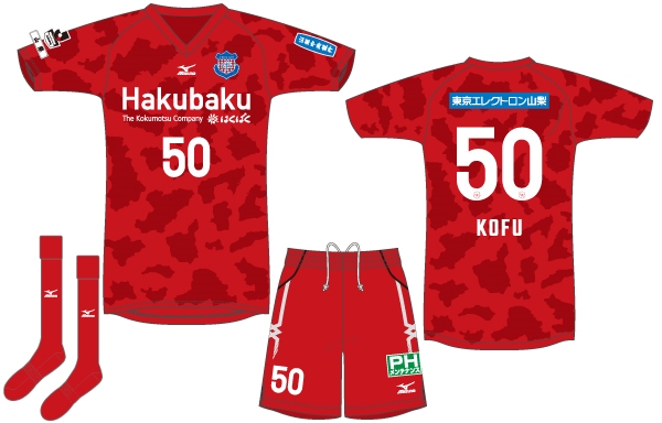 この「ヴァンフォーレ甲府クラブ創立50周年記念ユニフォーム」は、2ndステージ第4節の松本山雅戦(7月25日)を皮切りにFC東京戦(8月12日)、ヴィッセル神戸戦(同22日)、川崎フロンターレ戦(9月12日)の計4試合のホームゲームで使用される。