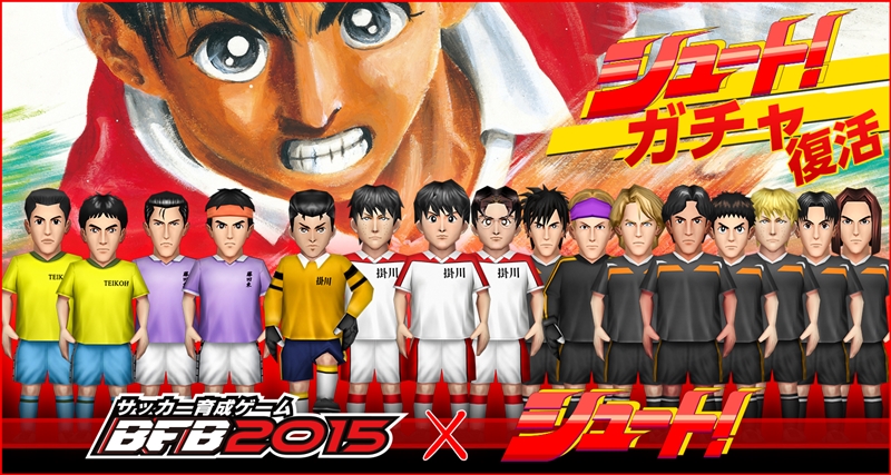 シリーズ累計300万ダウンロードを達成している株式会社サイバードの人気ゲーム『BFB 2015 – サッカー育成ゲーム』が今週、大島司氏が描く発行部数5,000万部を超えるサッカー漫画の傑作「シュート!」との再タイアップを発表。16日より実施している。