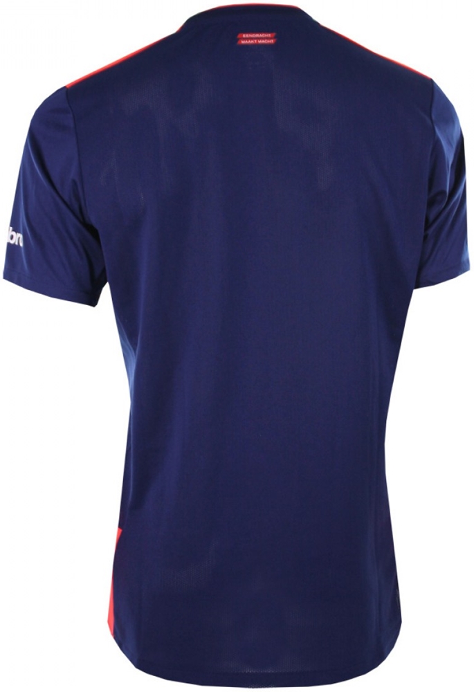 アウェイは一転モダン寄りのデザインで、濃い青を基調にシャドーのボーダー柄を採用。さらに斜めの切り替えしで変化を付けている。