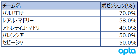 ライバルのレアル・マドリーは58%、アトレティコ・マドリーは49%と上位のチームでもシーズンを通して60%を超えるのは至難の業。それがまさかの70%とは…。
