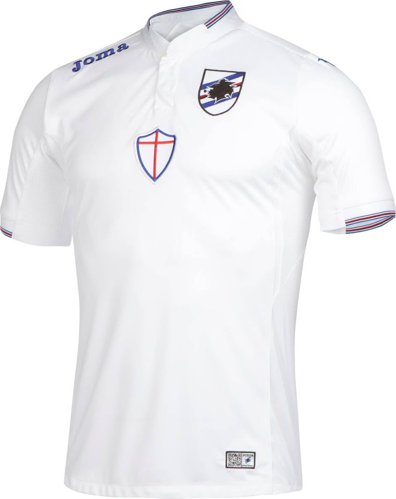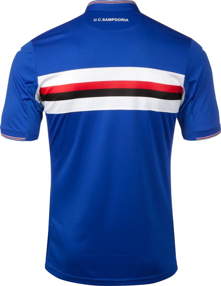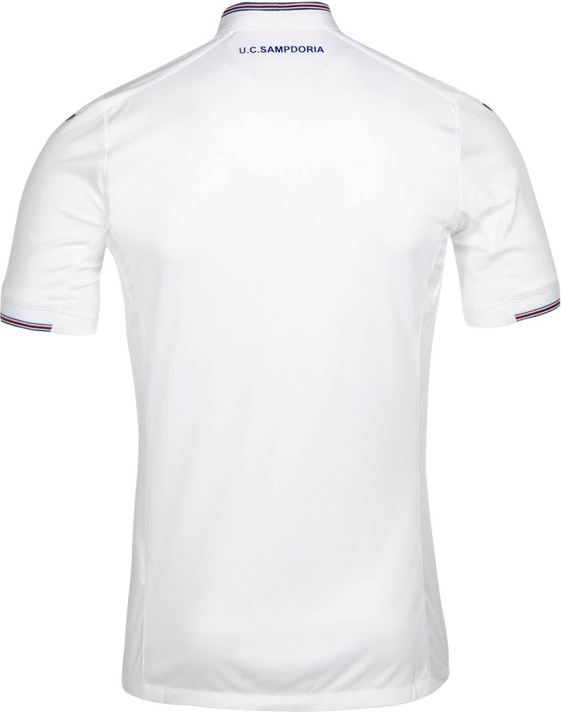 襟と袖に配されたクラブカラーがちょっぴり新鮮。首元には「U.C.(Unione Calcio) Sampdoria」の文字が入れられている。