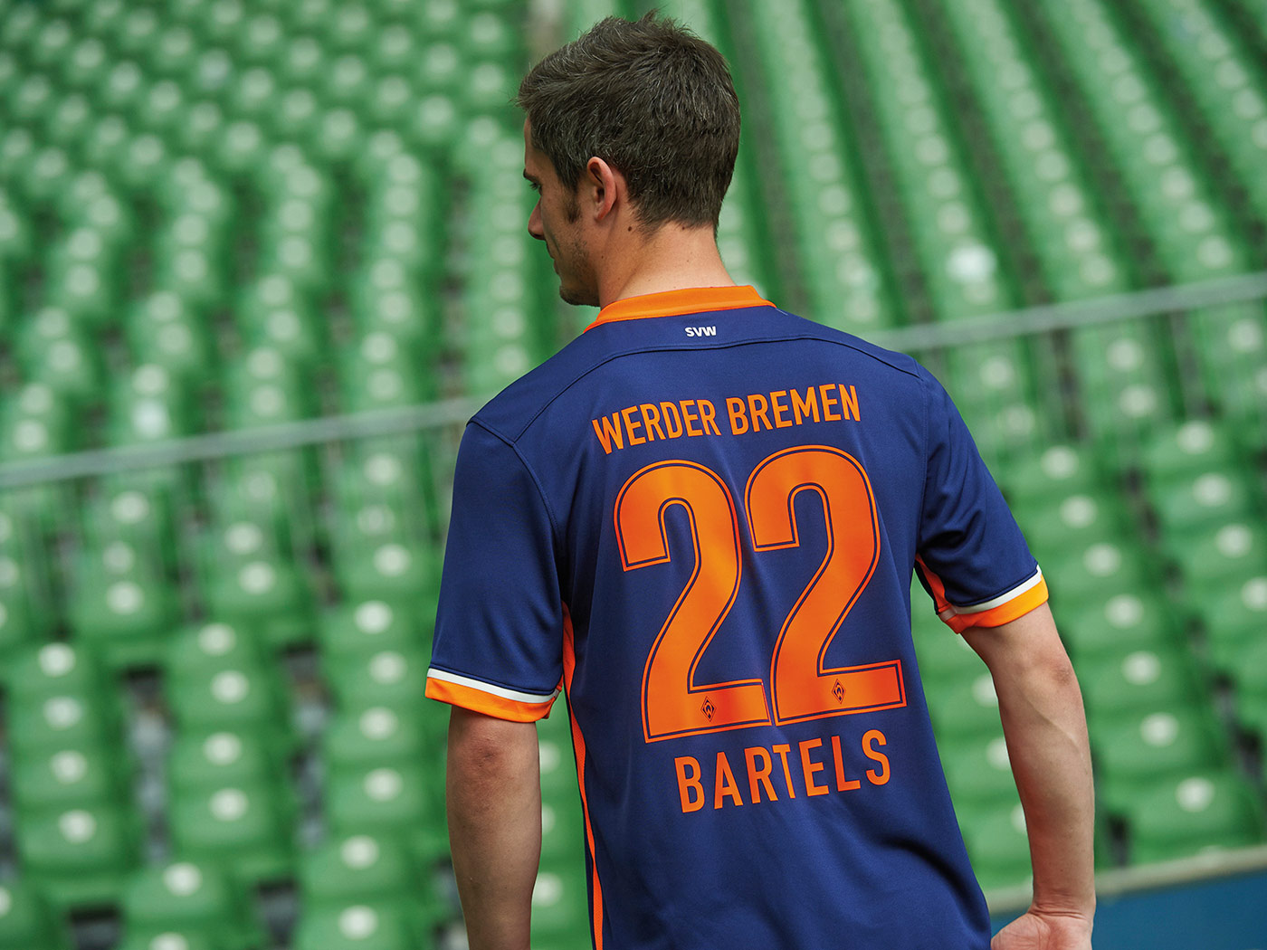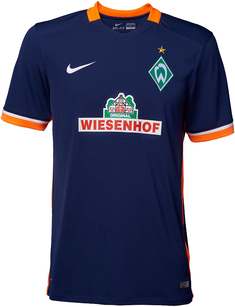 ブレーメンは昨季終盤に懐かしい感じの新しいホームユニフォームをお披露目。それに続くアウェイは紺を基調にオレンジをアクセントとして配したデザインとなっている。