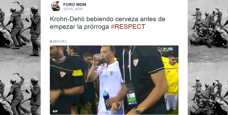Krohn-Dehli bebiendo cerveza antes de empezar la prórroga #RESPECT