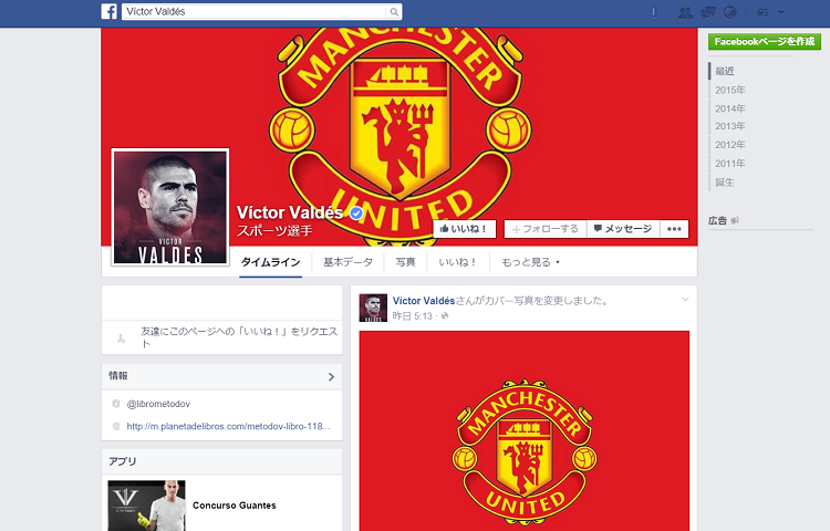 ビクトル・バルデスは、このタイミングでFacebookのカバー画像を変更。なんと、マンチェスター・ユナイテッドのロゴをカバーにしたのだ。