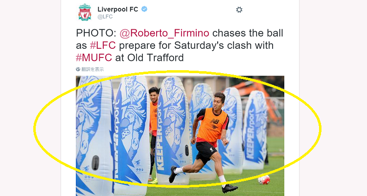 ブラジル代表から帰ってきたロベルト・フィルミーノがボールを追っているのだが…その後ろにそびえ立つ障害物にご注目。