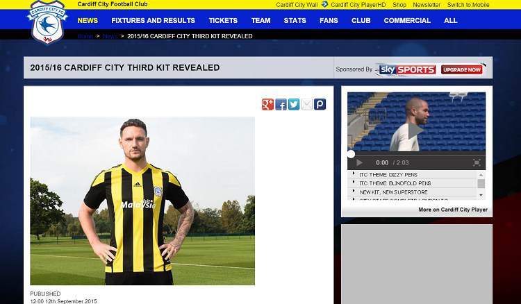 こちらが、このほど発表されたカーディフの3rdユニフォームだ。黄色と黒色の縦ストライプで、どこかフェネルバフチェを思わせる。