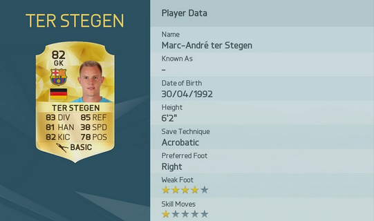16位 82 マーク=アンドレ・テア・シュテーゲン バルセロナ ドイツ 23歳