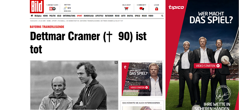 Trainer Dettmar Cramer gestern im Alter von 90 Jahren verstorben.