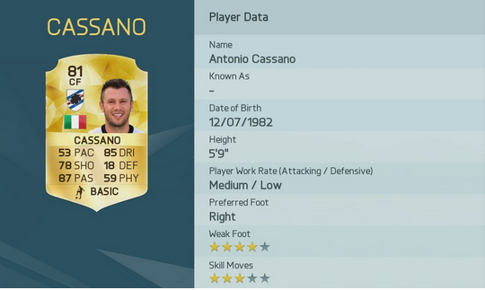 8位 アントニオ・カッサーノ 87 CF サンプドリア イタリア