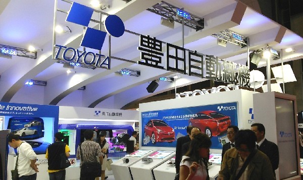 ≪豊田自動織機のブース。ハイブリッド車「プリウス」には同社の電子機器が搭載される≫