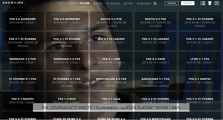 このWebページではイブラヒモヴィッチがこれまでにあげた全ゴール動画を閲覧することができ、さらにはこれまでに所属してきたチームやリーグ、あるいはゴールをあげたシーズンごとに検索することが可能だ。