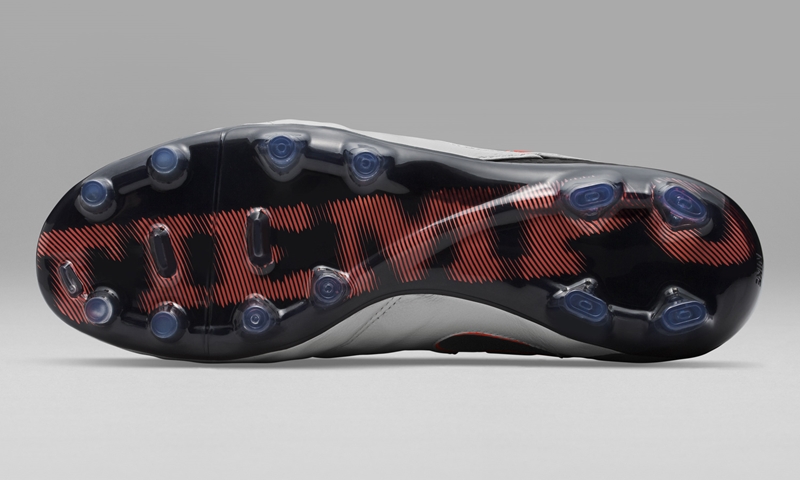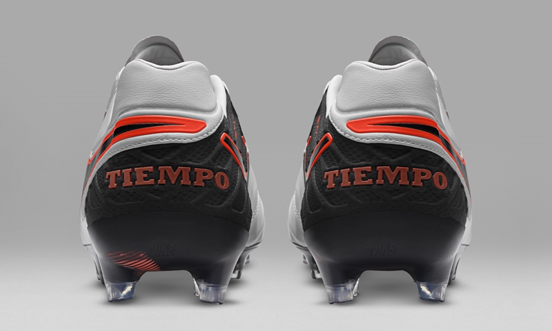 「ティエンポ」の伝統的なシュータンのデザインを保持したまま、アッパーと一体化したワンピースタイプの構造を採用。「マーキュリアル」「ハイパーヴェノム」に続く流れで、甲部分のフィット感を高めるとともにプレー中のシュータンのずれも防止している。