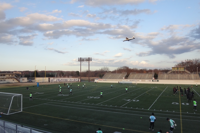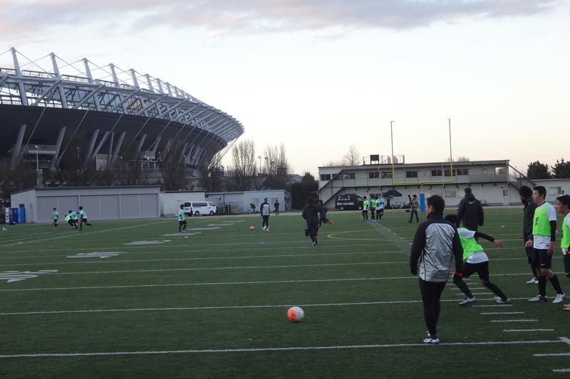 1対1のパス出しを行う長友。奥には、FC東京時代のホーム、味の素スタジアムが見える。