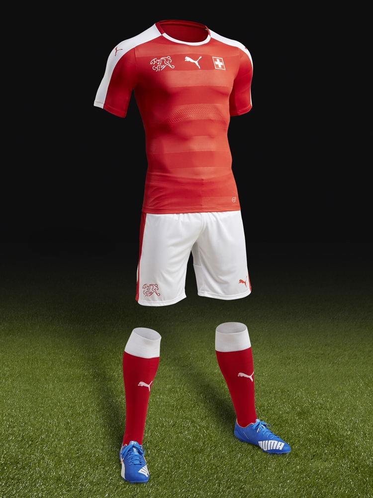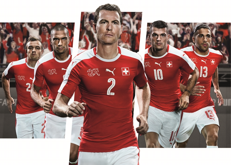 そのスイスのEURO2016に向けた新ユニフォームがこちら。隣国オーストリアとの差別化に毎回苦労の色が伺える・・・。