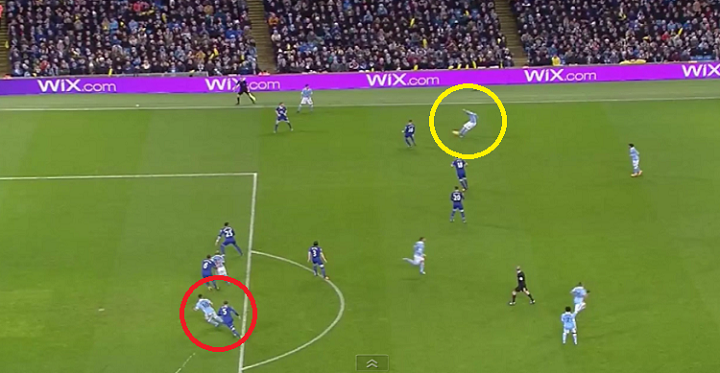 黄色がデ・ブライネ、赤がアグエロ。プレッシャーがなかったとは言え、「この距離をこの精度で通してくるか…」といった感じの神クロスである。一瞬の隙を突き、ジョン・ストーンズの裏側に走り込んだアグエロもお見事である。