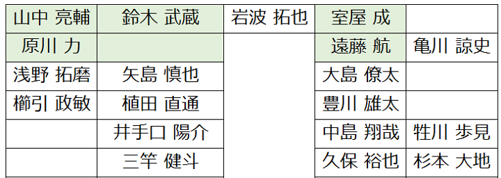 山中のツイートにもチラッと写っているが、どうやら南野は最後列が定位置であるようだ。